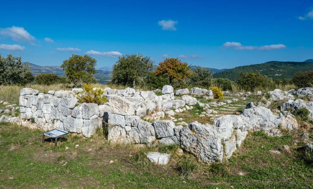 Ο αρχαίος οικισμός αναπτύσσεται κλιμακωτά σε τρία επίπεδα, ακολουθώντας τη διαμόρφωση του λόφου, τα οποία ορίζονται από οχυρωματικούς περιβόλους. Οι ανασκαφές έφεραν στο φως σημαντικά ευρήματα, όπως νομίσματα, αγγεία, κοσμήματα, πολλά από τα οποία εκτίθενται στο Αρχαιολογικό Μουσείο Ηγουμενίτσας.