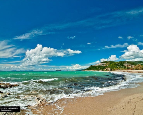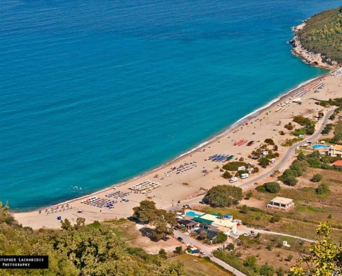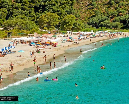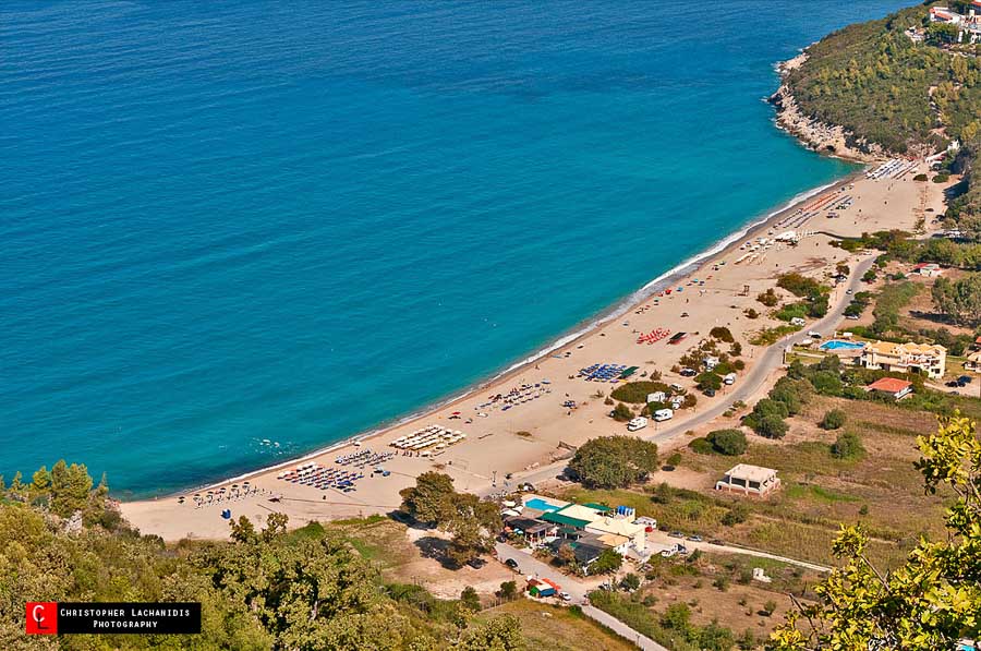 Από τις διασημότερες παραλίες της περιοχής, Υπέροχη και μαγευτική παραλία, μεγάλη σε μήκος και πλάτος, με χοντρή άσπρη άμμο, καταγάλανα, καθάρια και βαθιά νερά. Οι πράσινοι λόφοι, που βρίσκονται στις δύο άκρες της παραλίας, συμβάλλουν καθοριστικά στη δημιουργία ενός αληθινά μαγευτικού τοπίου. Πολυσύχναστη με αρκετές ξενοδοχειακές μονάδες, ενοικιαζόμενα δωμάτια, εστιατόρια και καφέ. Είναι μια παραλία που μαγεύει κάθε επισκέπτη. Θα τη συναντήσετε στα 8,5 χλμ. από το camping μας